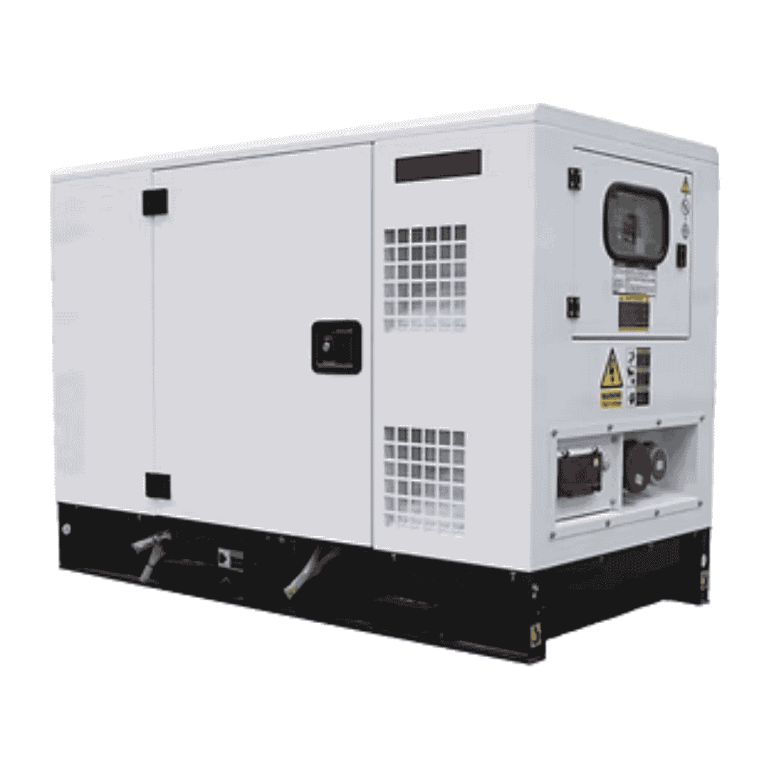 Marca: Kromus Acústica. Modelo: DHY14KSE. Tipo: Conjunto gerador a diesel. Potência nominal: 12,5 kVA / 10 kW. Potência máxima: 14 kVA / 11,2 kW. Tensão: 400 V – 50 Hz – Trifásico. Intensidade nominal: 18 A. Nível de som (7m; 50% da carga): 66 dBA.